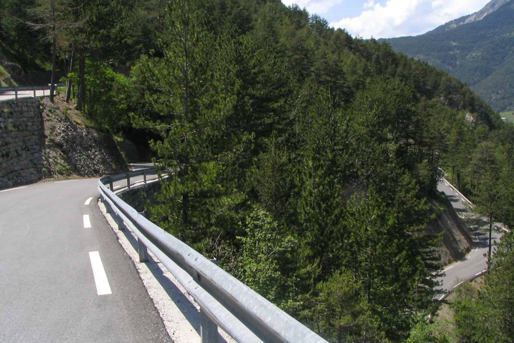 Von Barcelonette aus führt die Route über Uvernet-Fours und den Col de la Cayolle, dem letzten Pass auf der Route, der die 2.000 Marke durchbricht. Die Abfahrt nach Guillaumes ist selbst dort, wo sie bereits flacher wird, ein Traum. Am Ende von Guillaumes zweigt die Route links in Richtung Valberg ab. Eine meist leicht ansteigende, in den Hang des Bergrückens geschlagene Straße führt mal mehr, mal weniger wild gewunden bis Valberg. Wer enge Serpentinen mag, sollte sich in Valberg den Abstecher nach Péone gönnen.