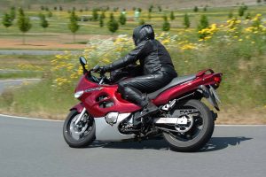 Netter Nebeneffekt des Regens: die geplanten Übungen wurden nach kurzer Zeit reduziert auf die Übung ‘freie Fahrt’. Der Regen sorgte auch dafür, dass nach kurzer Zeit nur noch drei, wenig später nur noch zwei auf dem Oval fuhren – einer davon war ich. Wir steigerten beide unsere Geschwindigkeit zunehmend – meine Wohlfühlgrenze wurde bei 150 km/h in der engeren Kurve und 180 km/h in der anderen erreicht, am Anbremspunkt vor den Steilkurven stand die Nadel bei 200 km/h. Der Kollege mit der Firestorm war etwas schneller, ich ließ ihn auf einer Geraden vorbei. Wie gesagt, alles im strömenden Regen – aber halt nicht im öffentlichen Straßenverkehr sondern auf einer planen Strecke mit nahezu perfekter Wasserabführung und Steilkurven, die dafür sorgen, dass man eigentlich nur geradeaus fährt.