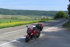 Der zweite Tag endete gegen 16 Uhr. Meine GSX750F hatte am Sonntag 147 Kilometern auf der Teststrecke zurückgelegt, dazu kommen noch die 15 Kilometer mit der K1200S. Es gab eine kurze Abschiedsveranstaltung, in der die obligatorischen Teilnahmeurkunden ausgehändigt wurden – ich gehörte zu den Banausen, die sie gleich geknickt haben – dazu gab es Kaffee und Kuchen. Gegen halb fünf begann dann der Aufbruch.