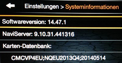 Zunächst ist es hilfreich zu wissen, welche Software-Version derzeit im Einsatz ist. Dazu wählt man im Uconnect Menü unten rechts die Option ‘Einstellungen’, scrollt sich dann an das Ende des Einstellungsmenüs und wählt dort den Menüpunkt ‘Systeminformationen’. Interessant für das Uconnect-Update ist der Eintrag bei Software-Version. In dem Beispiel rechts ist es die Version 14.47.1.