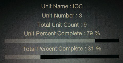 Mit Anklicken von ‘Yes’ wird es lustiger. Es erscheint eine Meldung, dass ein System Reset durchgeführt wird. Anschließend verschwindet die Anzeige, zwischenzeitlich wird das Display kriselig, nach 1-2 Minuten sollte der Update Vorgang beginnen. Das Update ist unterteilt in mehrere Units, die unterschiedlich groß sind. Der gesamte Update-Vorgang dauert einige Minuten – wer sich gerade am frühen Nachmittag in der Sahara befindet, sollte etwas Wasser im Wagen haben.